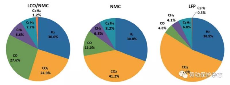 電池熱失控產生的一些氣體除了具有可燃性之外,還具有危害很高的毒性,如CO、HF(氟化氫)等。不同體系的電池在熱失控時產生的氣體成分及占比如圖2所示。