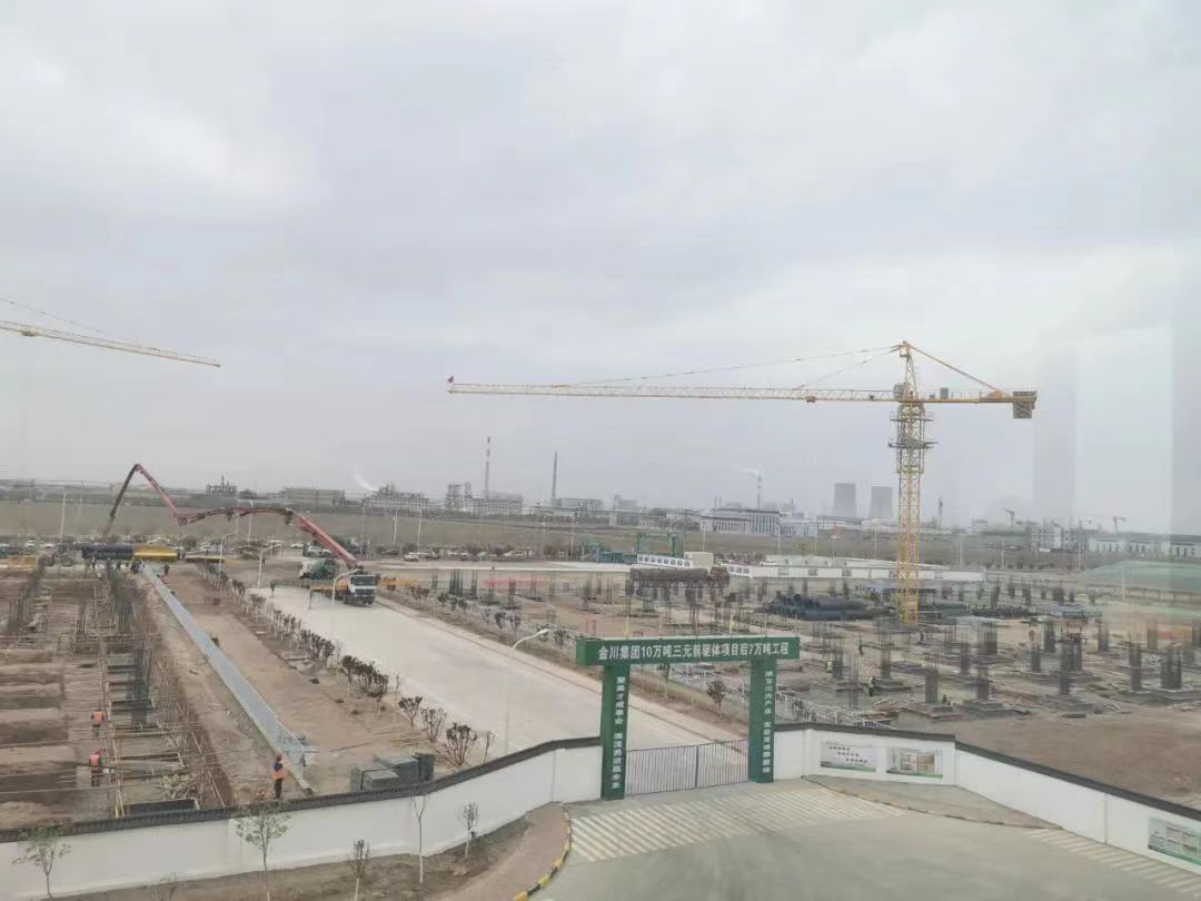 在金昌漢星能源有限公司項目施工現場,大型機械設備和基礎建筑材料已經到位,工人們在鋼筋水泥的架構間忙碌;